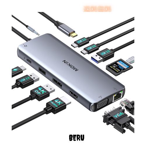 USB Cドッキングステーション type cドッキングステーション三画面出力 hdmi 【HDMI+DP+VGA 4K@60P三画面】MOKIN12-IN-1 usbハブhdmi 2*U