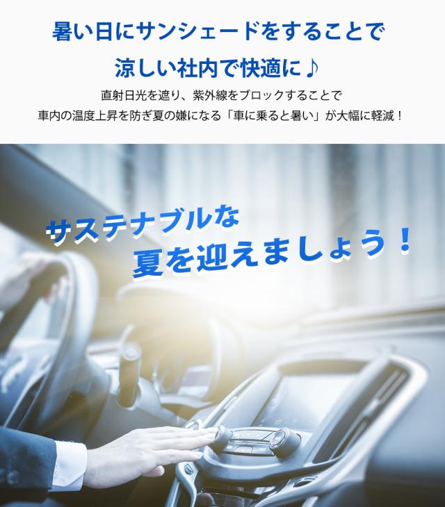 サンシェード は高密度生地でできており、99%以上の紫外線を効果的に遮断し、高効率のチタン銀接着剤複合シェーディングで断熱性にも優れ、サンシェード の表面に日光が反射され。背面の黒いコーティングは、グレアを軽減、紫外線による車内装の損傷を防ぎます。車内の温度を大幅に下げることができ、エアコンの負荷を減らし、燃料消耗も節約できます。
