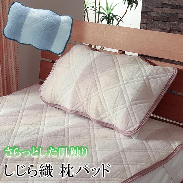 しじら織 枕パッド 夏用 グラデーション しじら織り しじら 43×63cm さわやか さらさら さらっと まくらパッド パット 枕カバー 裏面枕留めゴム2本付き ストライプ 和風 和柄 ポイント消化