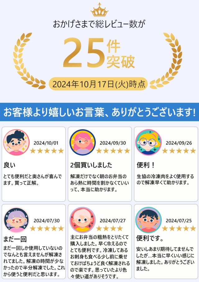 時間とコストを節約しながら、食材本来の味を損なわずに解凍できます。お弁当や煮物などの粗熱取りにも役立ちます。