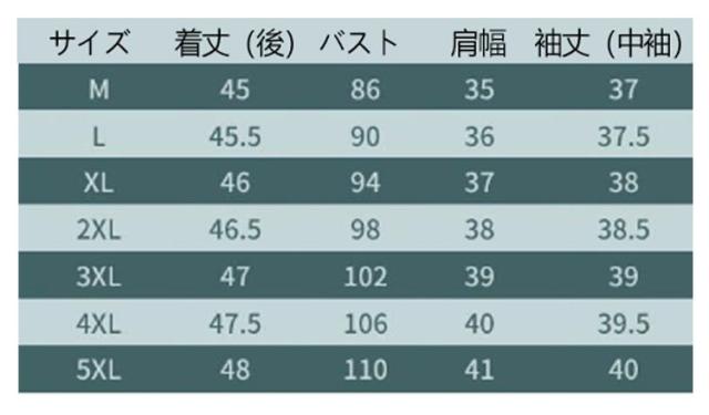 | サイズ | M L XL 2XL 3XL 4XL 5XL |