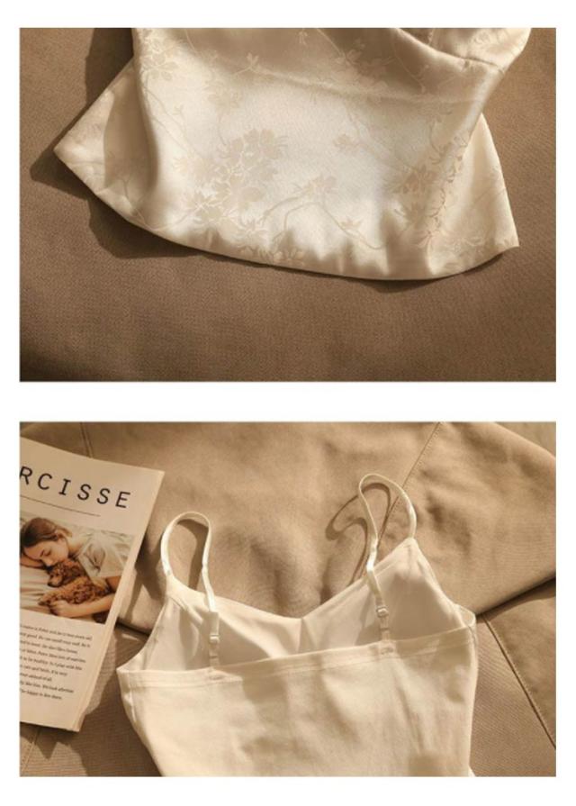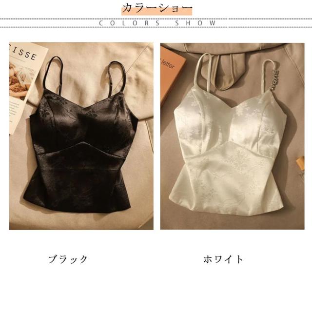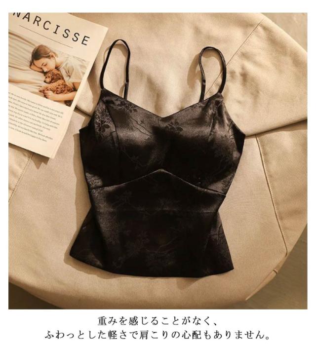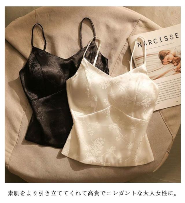 インナー レディース サテンスリップ キャミソール 光沢 部屋着 花柄 ショート丈 ジャガード キャミソール サテン トップス カップ付き ブラウス 袖なし アンダーウェア ゆる 肌着 重ね着 キャミソール 上品 透けない 光沢感