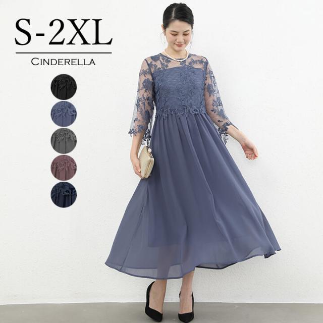 パーティードレス レディース ロングワンピース 高級感 20代 30代 ゆったり ロング丈 ロングドレス 大きいサイズ おしゃれ 上品 フォーマル 花柄刺繍 長袖 袖有 透け感 シアー素材 フレアスカート レース ファッション S M L XL 2XL yj188592