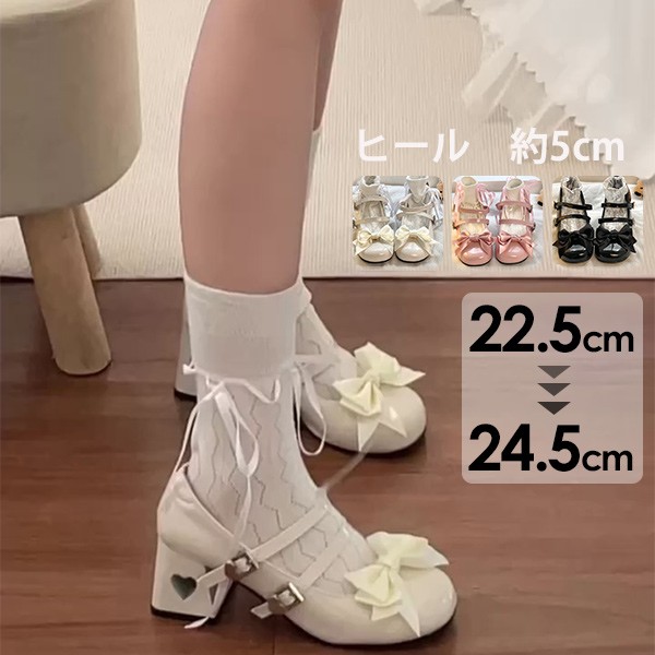パンプス レディース 春 夏 かわいい ロリータ ヒール5 大きいサイズ ストラップパンプス 通勤 日常 文化祭 イベント 美脚 お茶会 通学 クロスストラップ