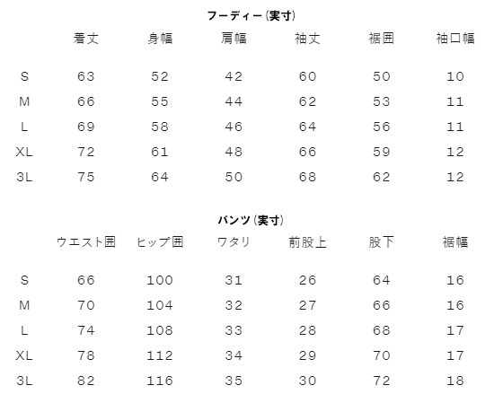 サイズ:身長 / チェスト / ウエスト