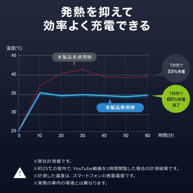 ●半導体冷却機能(ペルチェ素子)を搭載しており、充電中の発熱を抑制し、通常のワイヤレス充電器に比べ効率よく充電できます。