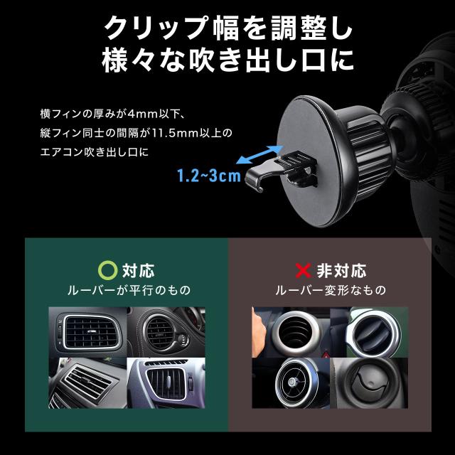 ■対応車種:エアコンルーバーの横フィンの厚みが4mm以下、縦フィン同士の間隔が11.5mm以上のエアコン吹き出し口