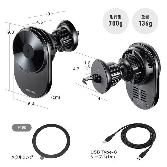 ■対応機器:MagSafe対応iPhone、または付属のメタルリングを貼り付け可能な700g以下のスマートフォン