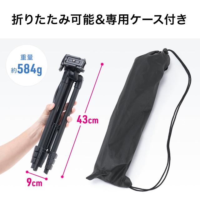 カメラ三脚 スマホホルダー内蔵 4段伸縮 持ち運び収納ケース付き コンパクト[200-DGCAM038]
