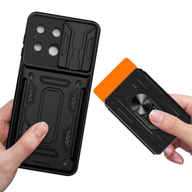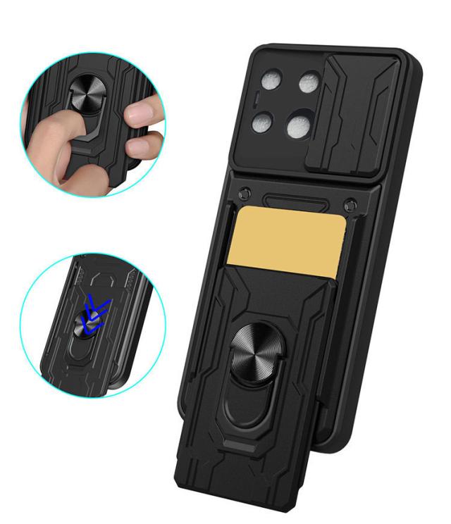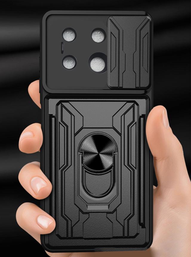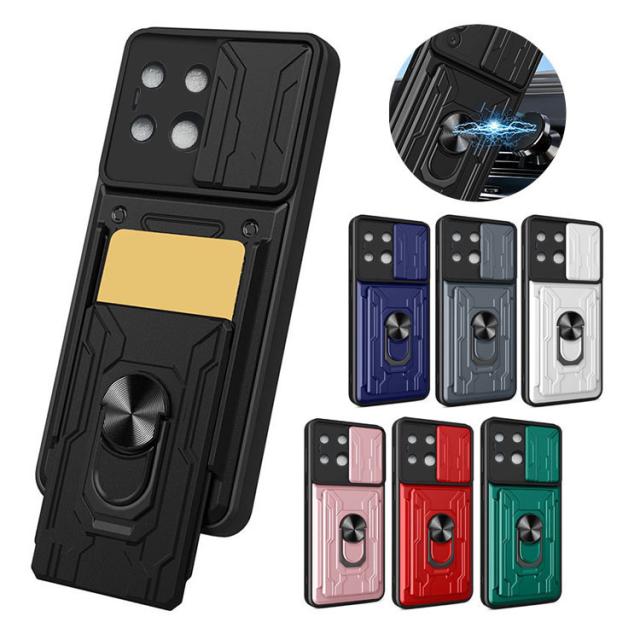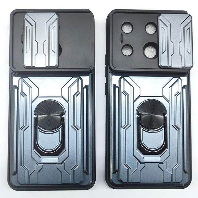 Redmi Note 13 Pro 5G 耐衝撃 ケース カバー スライド式カメラレンズカバー付き レンズ保護 一体型リング付き カード収納 ストラップホール付き 小米 シャオミ レッドミー ノート13 プロ おすすめ シャオミー レドミー