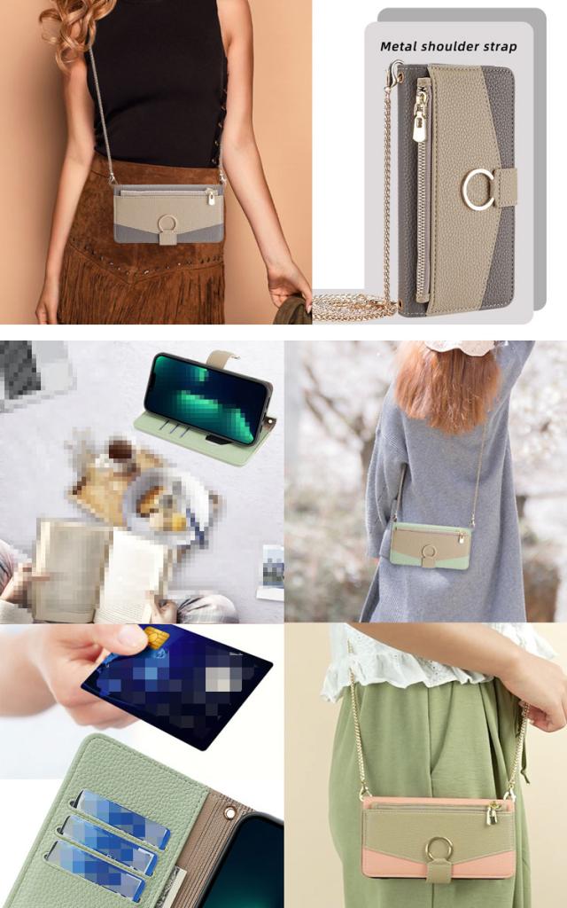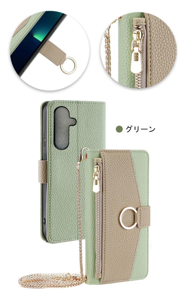 Galaxy A55 5G ケース カバー 手帳型 カバー PUレザー カード収納 肩掛けチェーン付き スタンド機能 カード収納 リング付き ミラー付き Samsung サムスン ギャラクシー A55 5G おすすめ おしゃれ スマートフォン/スマフォ/スマホケース/カバー