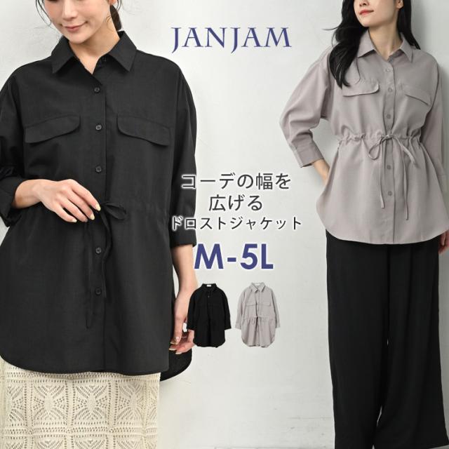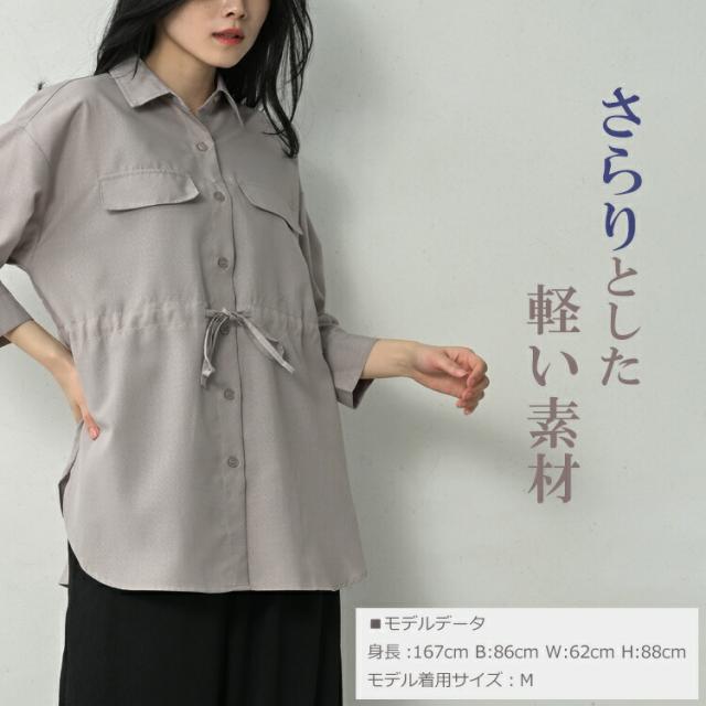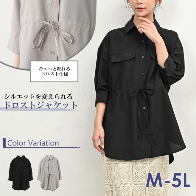 大きいサイズ レディース シャツジャケット 7分袖 メール便対応 ドロスト紐 前開きボタン トップス M/LL/3L/4L/5L ゆったりサイズ ぽっちゃり女子 プラスサイズ