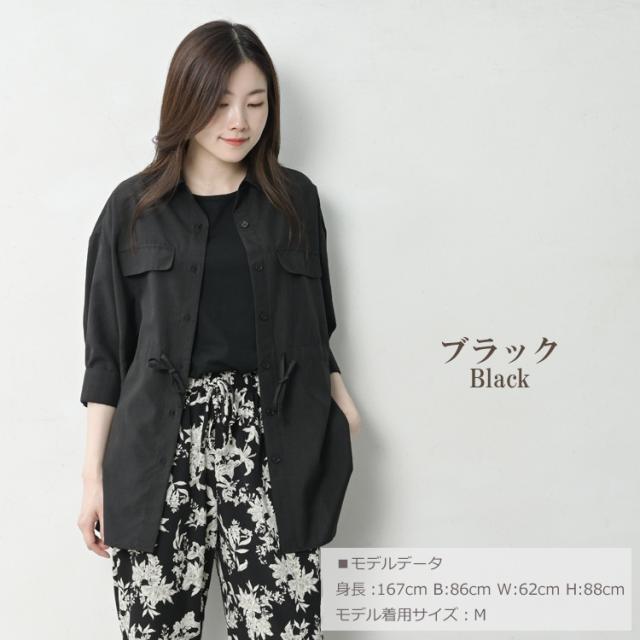【メール便対応】キュッと絞れるドロスト仕様のシャツジャケット。 XXXXL 2XL 3XL 4XL 9号 13号 15号 17号 19号 春 夏 秋 黒 7分袖トップス 30代 40代 50代 夏新作 春服 夏服 秋服 春物 夏物 秋物 2024 シルエットアレンジ 体型カバー カジュアル ナチュラル おしゃれ きれいめ ゆったりサイズ ぽっちゃり女子 プラスサイズ 大きいサイズ レディース 7分袖トップス 7分袖シャツ シャツジャケット ドロストシャツ ウエストリボン ウエスト調節 シルエットアレンジ レギュラーカラー シャツ襟 7分袖 七分袖 長袖 前開きボタン フロントボタン フェイクポケット ラウンドヘム 羽織り 無地 春服 夏服 秋服 春物 夏物 秋物 春トップス 夏トップス 秋トップス 春シャツ 夏シャツ 秋シャツ 体型カバー シャツチュニック ゆったり 大きめ 大人 カジュアル ナチュラル フェミニン オフィスカジュアル 大人可愛い きれいめ かわいい かっこいい 着こなし おしゃれ 定番 春コーデ 夏コーデ 秋コーデ ファッション 大きめ 女性 婦人用 ミセス 30代 40代 50代 2024 夏新作 春 夏 秋 黒 M LL 3L 4L 5L 9号 13号 15号 17号 19号 cam-ssa-tp0369