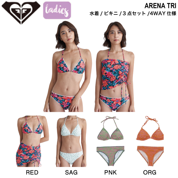 【ROXY】ロキシー 2024春夏 ARENA TRI レディース 水着 ビキニ トップス スカート ベアトップ 3点セット 4WAY 海 プール