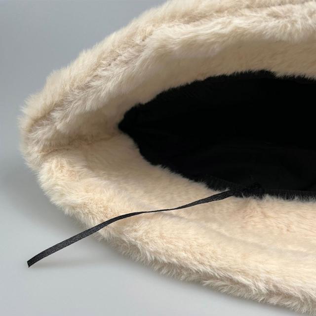 肌触りなめらかで気持ちいい、もこもこファーのバケットハット。