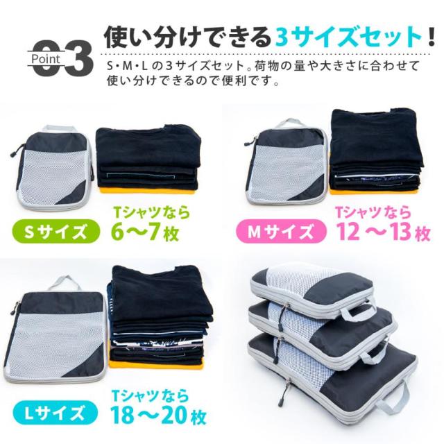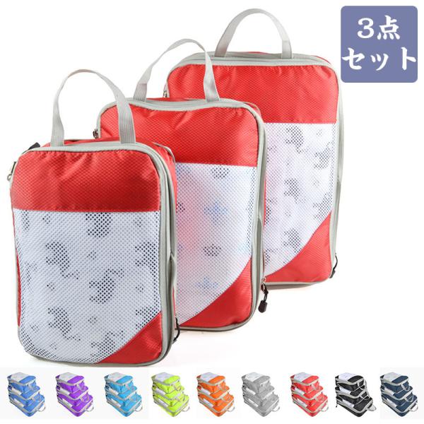 圧縮バッグ ファスナー トラベル 旅行 ポーチ 3点セット おしゃれ トラベルバッグ 圧縮袋 バッグインバッグ 収納ポーチ トラベルグッズ 衣類 大容量 撥水加工