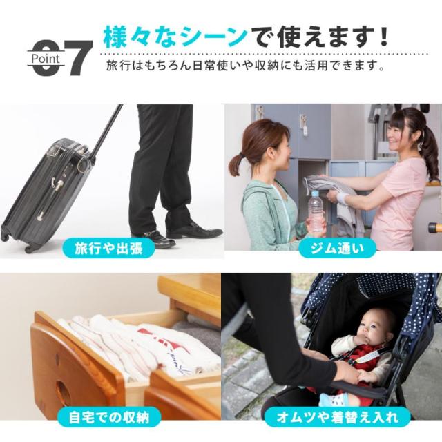 かさばるタオルや衣類を圧縮できるのでスペースを有効活用。