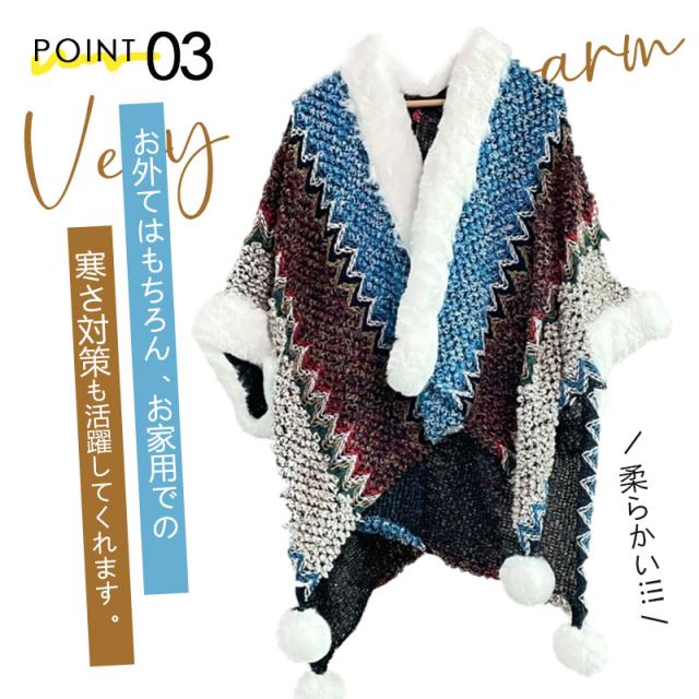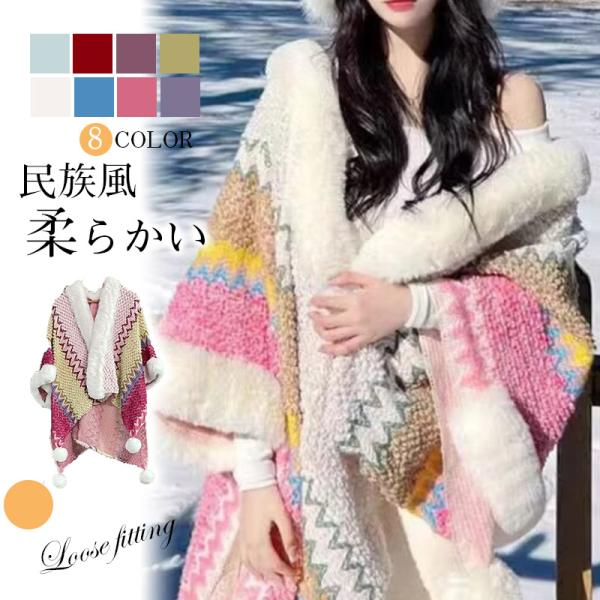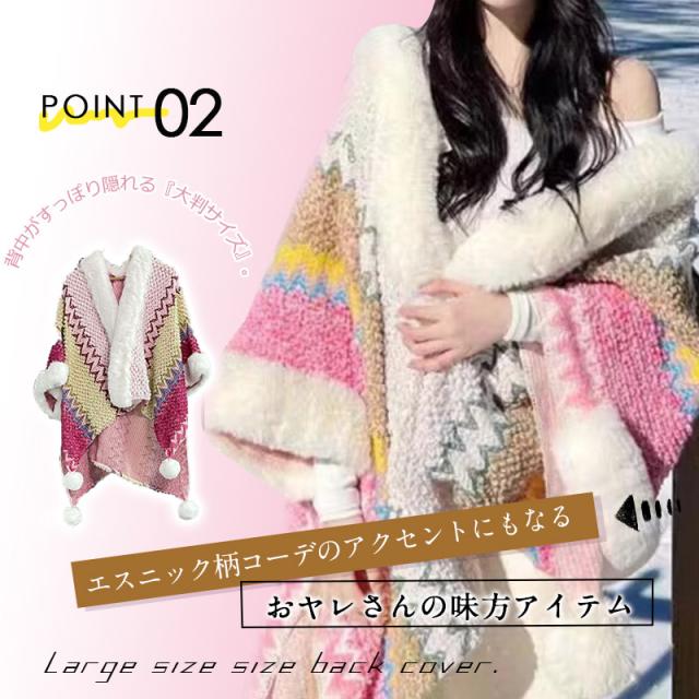 エスニックストール ポンチョ もこもこ 大判 エスニック柄 民族風 ストール 大判 大判ストール ケープ マント プレゼント 春秋冬 クリスマス 旅行
