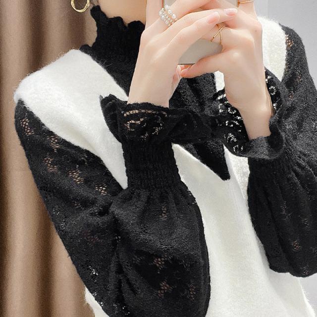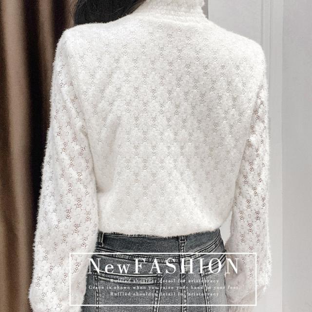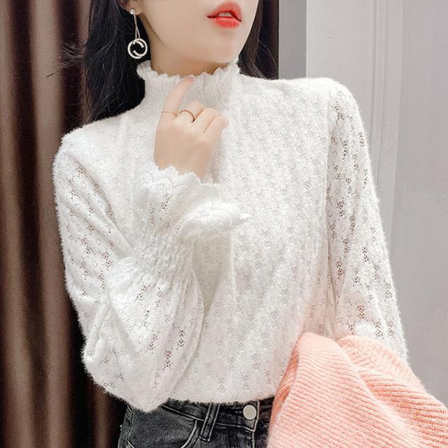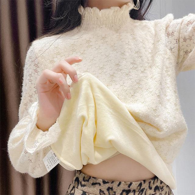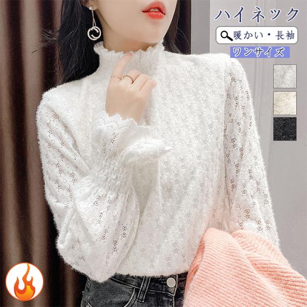 カットソー レディース トップス インナー 肌着 ハイネック 長袖Tシャツ 裏起毛 レース 保温 可愛い カジュアル 無地 一部即納