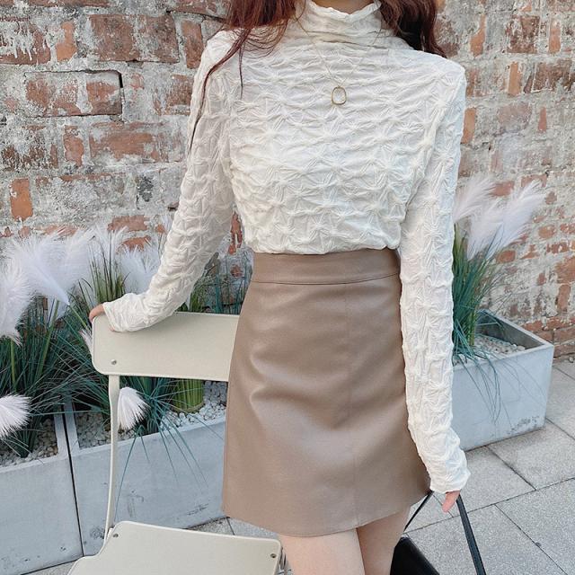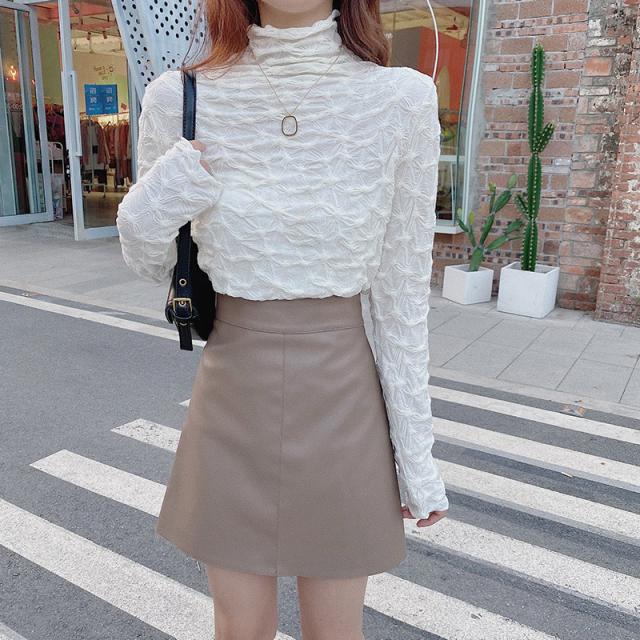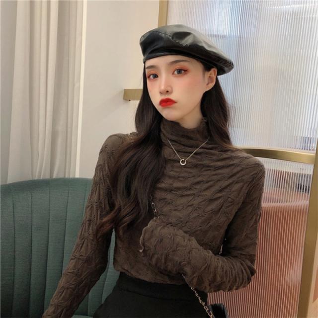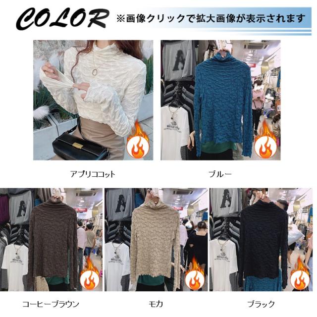 カットソー レディース トップス インナー 肌着 ハイネック 長袖Tシャツ 裏起毛 デザイン 保温 可愛い カジュアル 無地 一部即納