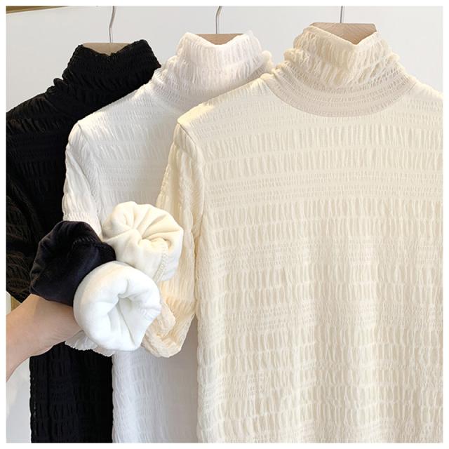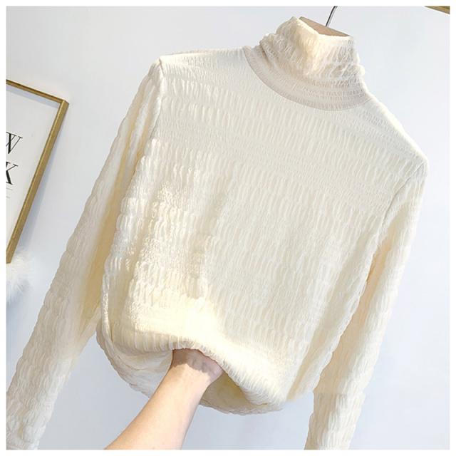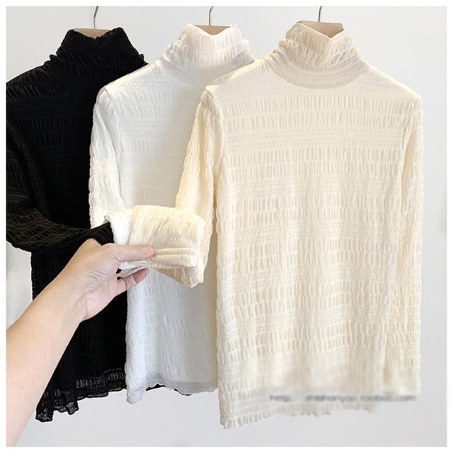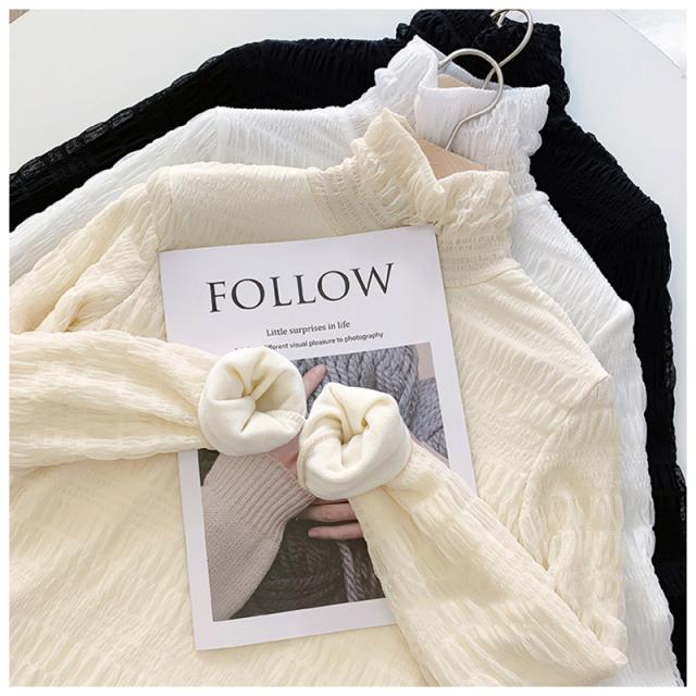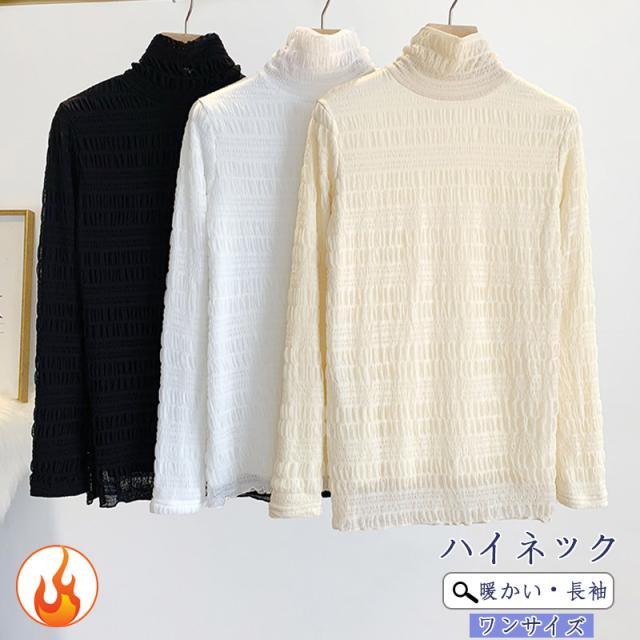 カットソー レディース トップス インナー 肌着 ハイネック 長袖Tシャツ 裏起毛 レース 保温 可愛い カジュアル 無地 一部即納