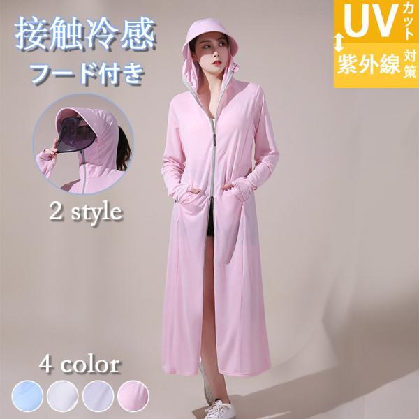 uv パーカー 指穴 uvカット ひんやり 接触冷感 ラッシュガード ロング丈 フード付き カーディガン 日焼け止め 軽量 長袖 薄手 吸水速乾