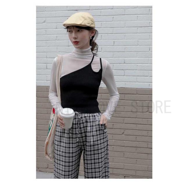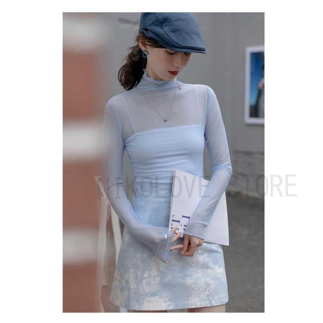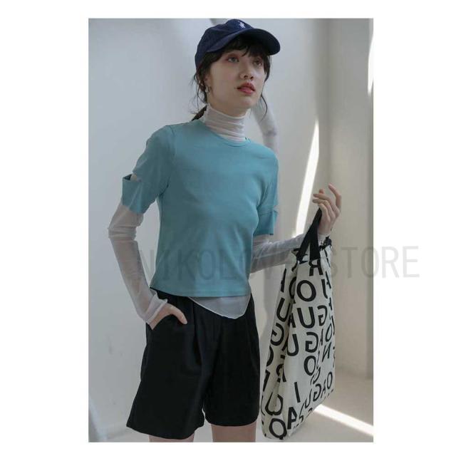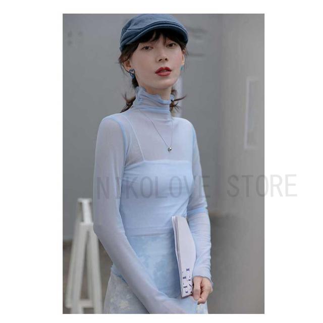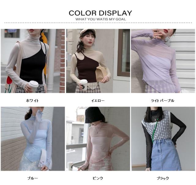 【2点で5%off!】トップス レディース ハイネック レイヤード インナー 重ね着 韓国ファッション おしゃれ レース シーファン Tシャツ 薄手 伸縮性 送料無料