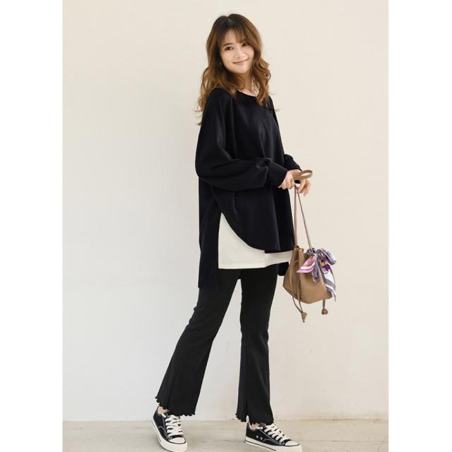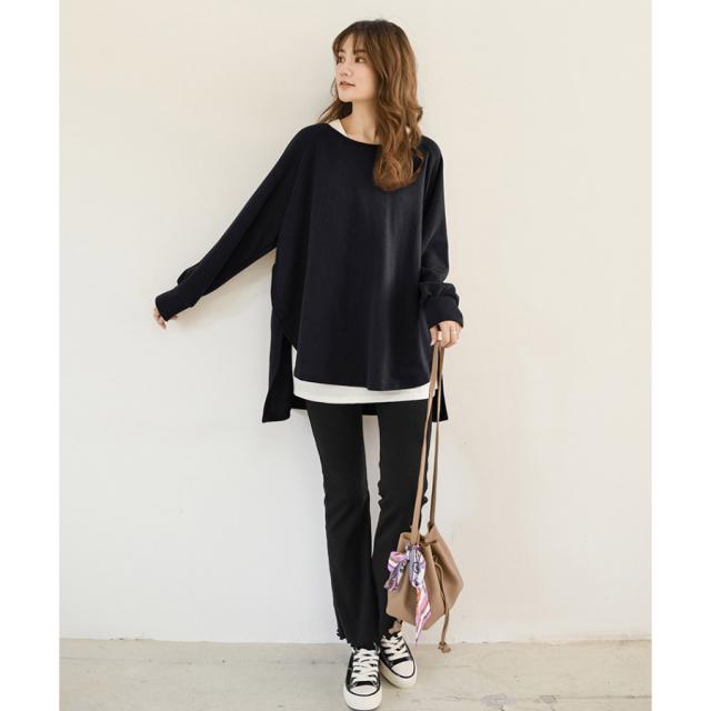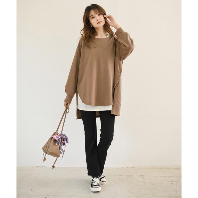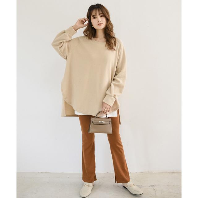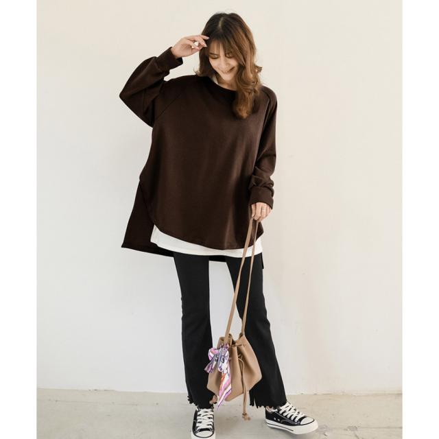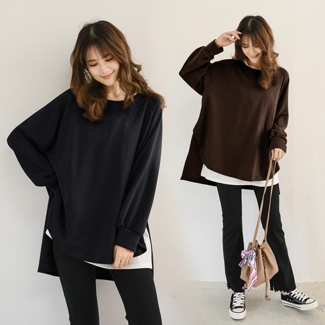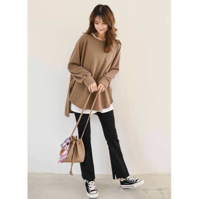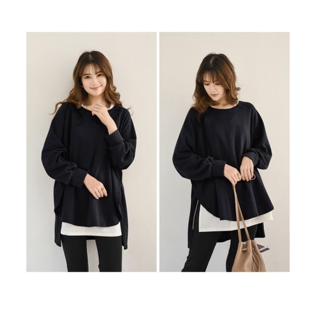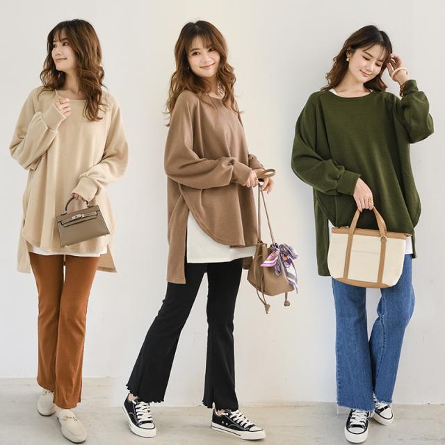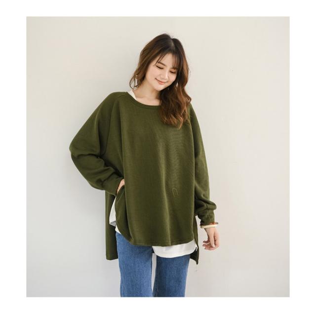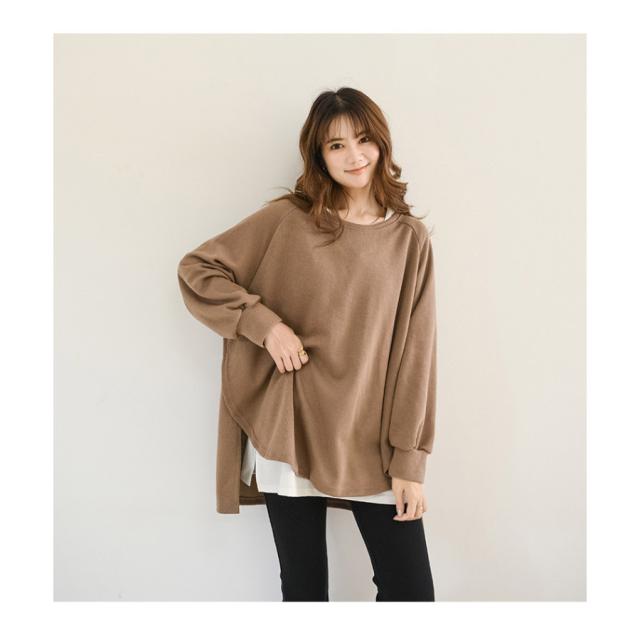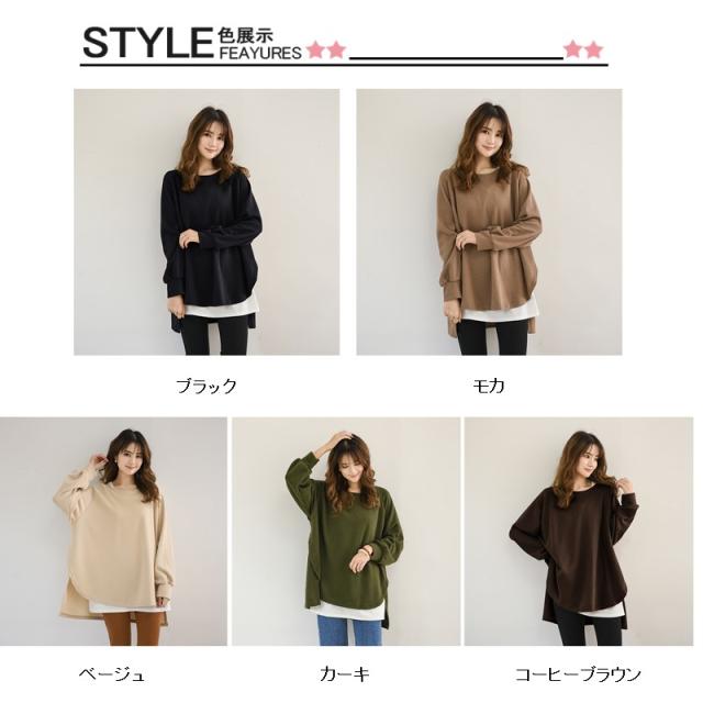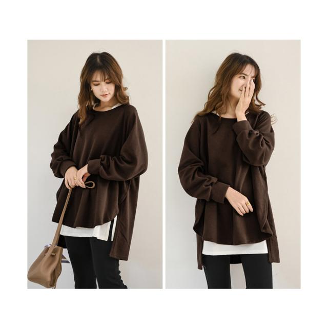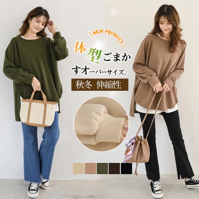 スウェット レディース サイドスリット 前後差 トレーナー 防寒 クルーネック 長袖 オーバーサイズ 無地 ゆったり 体型カバー 30代 40代