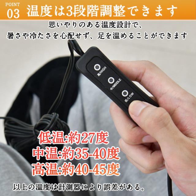 【3段階で温度を調節できます,自由に切り替わります。】温度は3段階調整できます。場所と周囲の温度に合わせて最適な温度を選んでください。思いやりのある温度設計で、暑さや冷たさを心配せず、足を温めることができます。