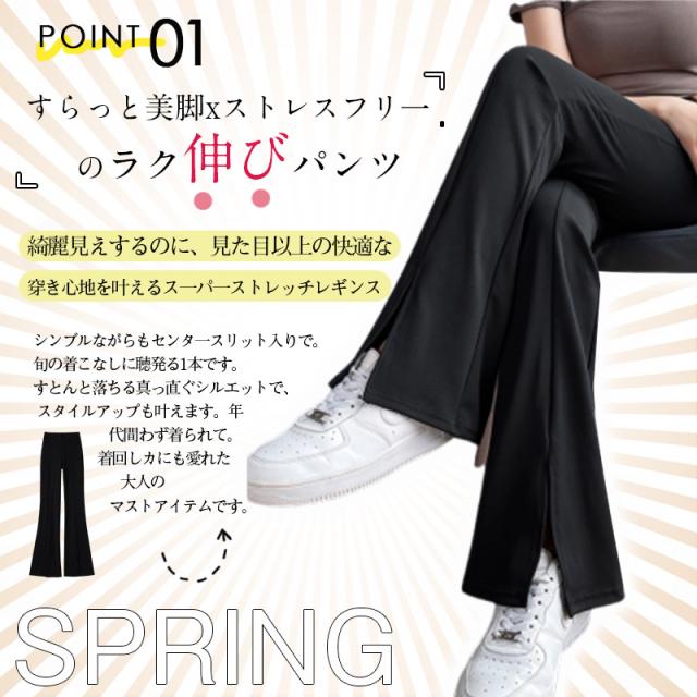 レギパン レギンスパンツ フレアパンツ 薄手 通気 伸縮性抜群 超伸び レギンス スリットパンツ センタースリット ストレッチパンツ 細身 通勤 通学