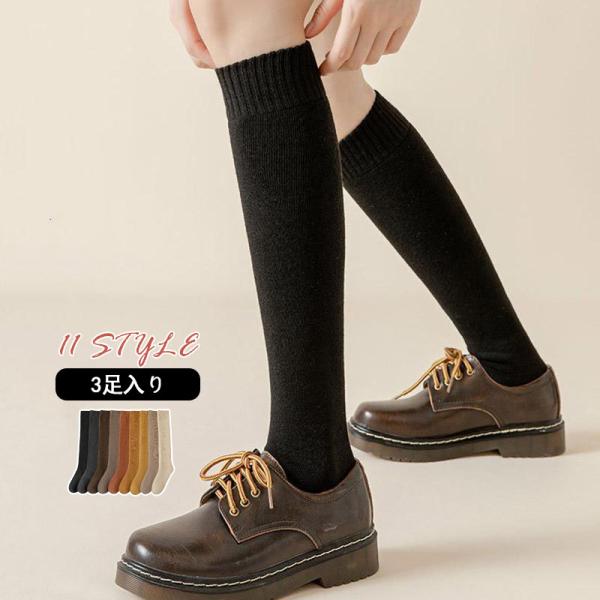 靴下 ニーハイソックス 3足入り ハイソックス 着圧 抗菌防臭 綿混 厚手 裏パイル 平編み無地オーバーニーソックス 学生 送料無料