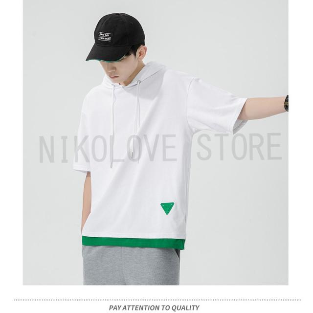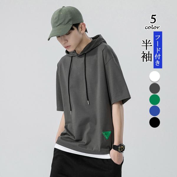 パーカー メンズ フード付き 半袖 半袖パーカー プルオーバ シンプル ゆったり カジュアル レイヤード 柔らかい 春夏着服 通学 男の子 通学 夏服