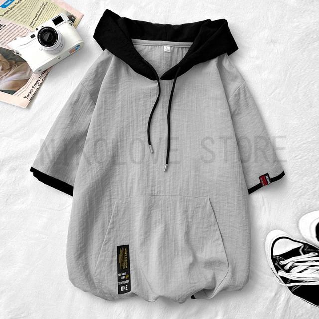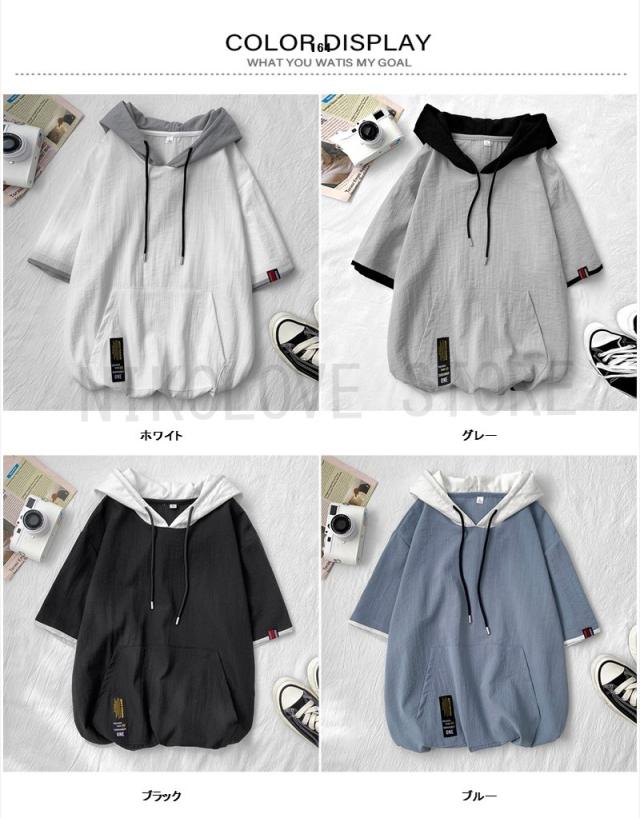 パーカー メンズ フード付き 半袖 5分半袖パーカー プルオーバ シンプル ゆったり カジュアル レイヤード かっこいい 男の子 春夏 通学 夏服 夏