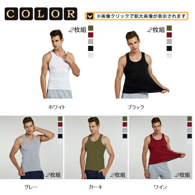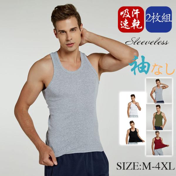 タンクトップ 2枚組 メンズ 無地 ベスト ノースリーブ インナー 肌着 下着 ランニング 熱中症対策 サマーウエア スポーツ トップス 吸汗