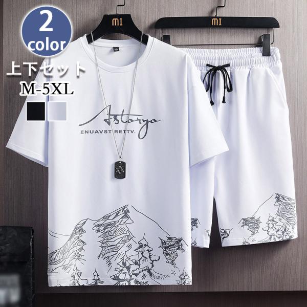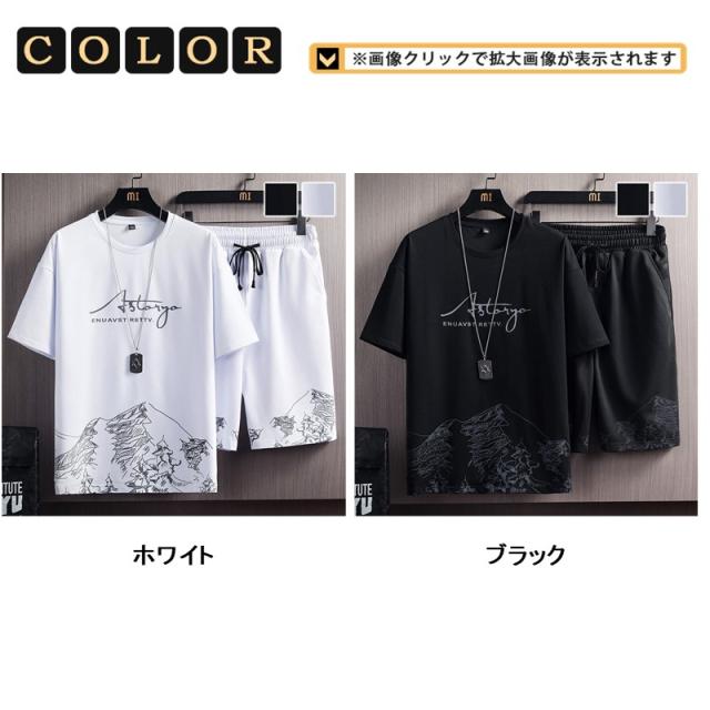セットアップ メンズ 半袖 夏 大きいサイズ 夏服 パンツ上下セット 薄手 上下2点セット メンズファション 夏 半袖 ジャージ 黒 白 カジュアル