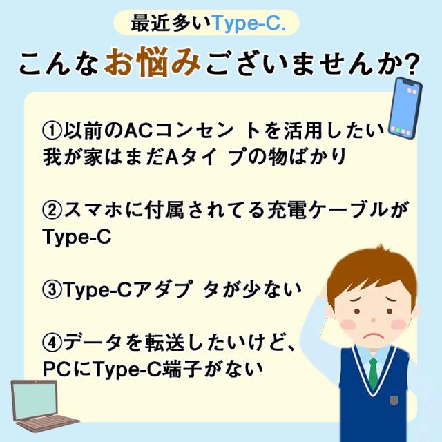 このプラグを使用することにより、従来のUSBプラグしか付いていないパソコンでも様々なType-C対応機器が接続できます。