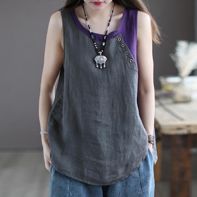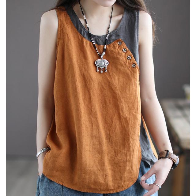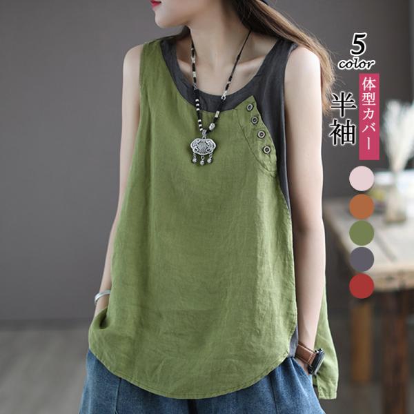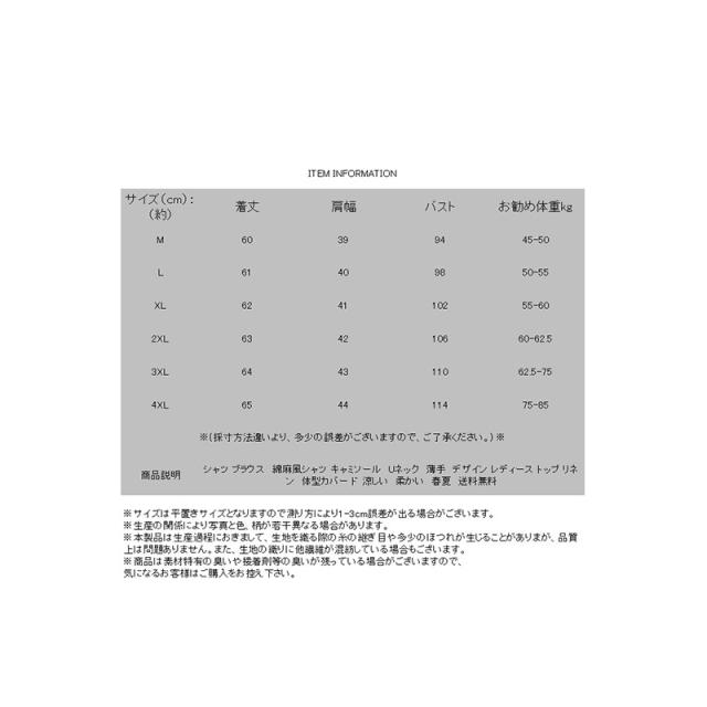シャツ ブラウス 綿麻風シャツ キャミソール Uネック 薄手 デザイン レディース トップ リネン 体型カバー ド 涼しい 柔かい 春夏 送料無料