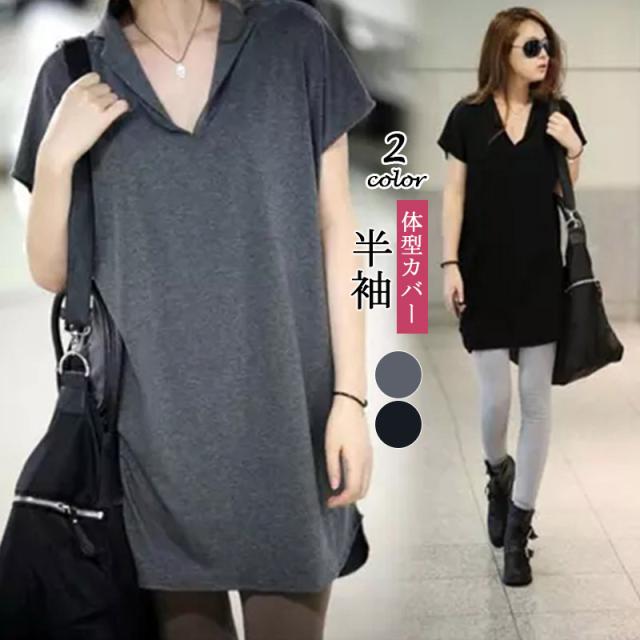 コットンTシャツ 半袖 レディース トップス 夏 綿 かわいい おしゃれ カジュアル 通勤 通学 無地 送料無料 薄手 涼しい 襟付き 大きいサイズ