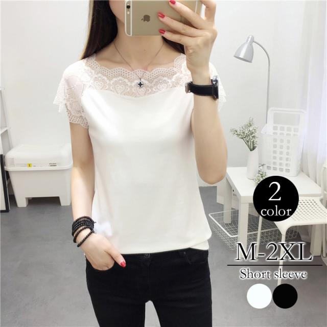 Tシャツ レディース カットソー 無地 半袖 トップス カジュアル レース襟 着痩せ 通勤 夏用 きれいめ おしゃれ 夏服