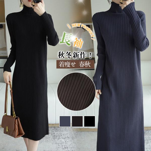 ワンピース ニットワンピース レディース ロング ニット 長袖 ストレッチ チュニックワンピース ニットワンピ タイト 秋冬新作 クリスマス