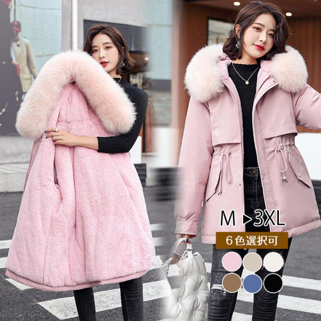 中綿コート レディース ロングコート アウター コットン 裏起毛 裏ボア 冬服 防寒着 暖かい 厚手 フード付き カジュアル オシャ 厚手 きれいめ