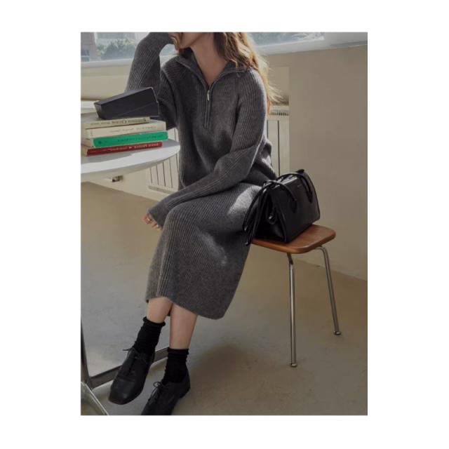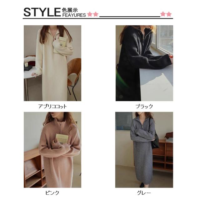 ワンピース レディース 冬 秋 ニット きれいめ タートルネック 長袖 ニット 無地 着やせ 秋冬 ロング シンプル 体型カバー
