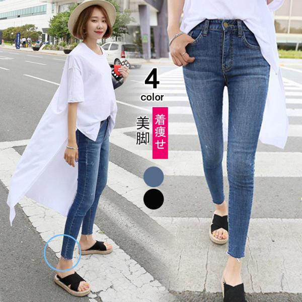 最大15%OFF! スキニー ジーンズ レディース デニム パンツ ストレッチ アンクル丈 9分丈 10分丈 ダメージ クラッシュ