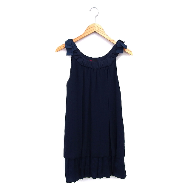【中古】レイビームス Ray Beams ワンピース フレア バルーン ミニ シフォン ノースリーブ リボン 紺 ネイビー /NT5