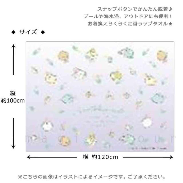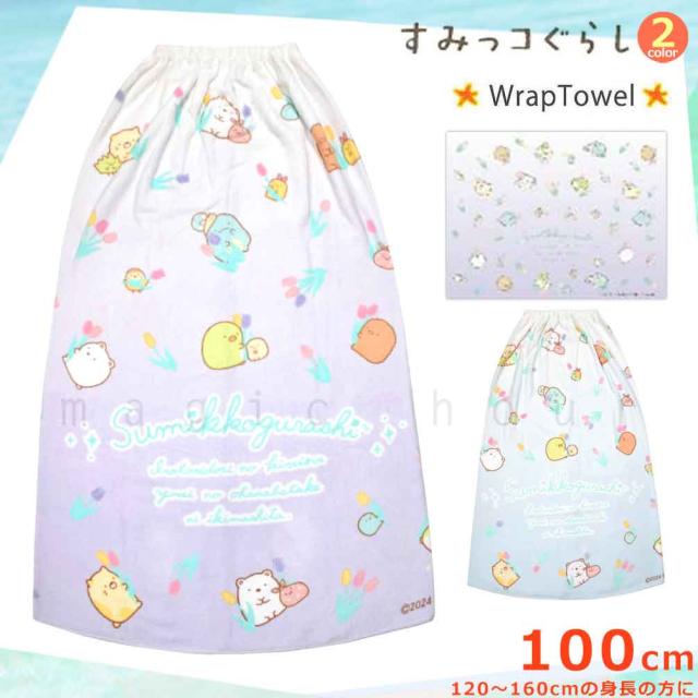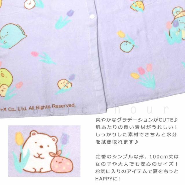 プール タオル ラップタオル 100cm 子供 巻きタオル すみっコぐらし キッズ お着換えタオル 女の子 男の子 水泳 子ども スイミング かわいい ブルー パープル 白