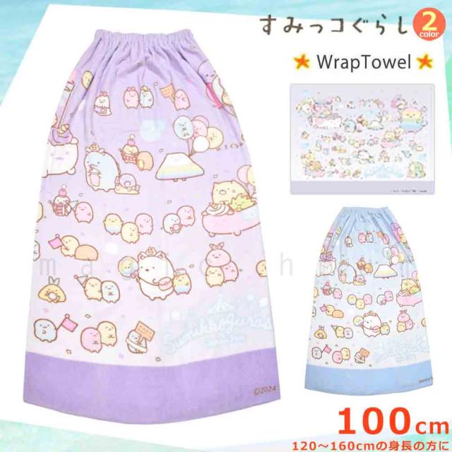 プール タオル ラップタオル 100cm 子供 巻きタオル すみっコぐらし キッズ お着換えタオル 女の子 男の子 水泳 子ども スイミング かわいい パープル ブルー 白