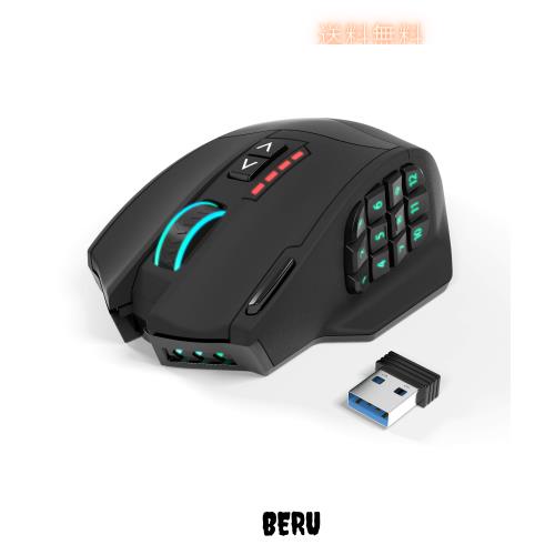 Gamspeed MMO ゲーミング 無線 マウスラグフリー ワイヤレス ゲーミング マウス、16000DPI 1000Hzポーリングレート2.4GHz 5段階DPI可調整