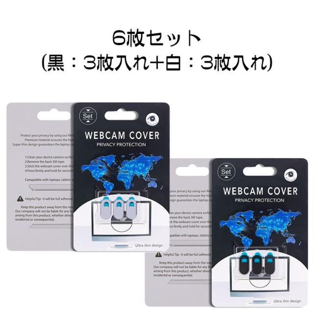 【6枚入り】ウェブカメラカバー webcam cover 超薄型 スライダー プライバシー保護 インカメラカバー タブレット/パソコン/スマホ/ノートパソコン カメラシール iPhone/iPad/携帯電話/Mac/デスクトップなど ハッカー盗撮防止 (黒+白)