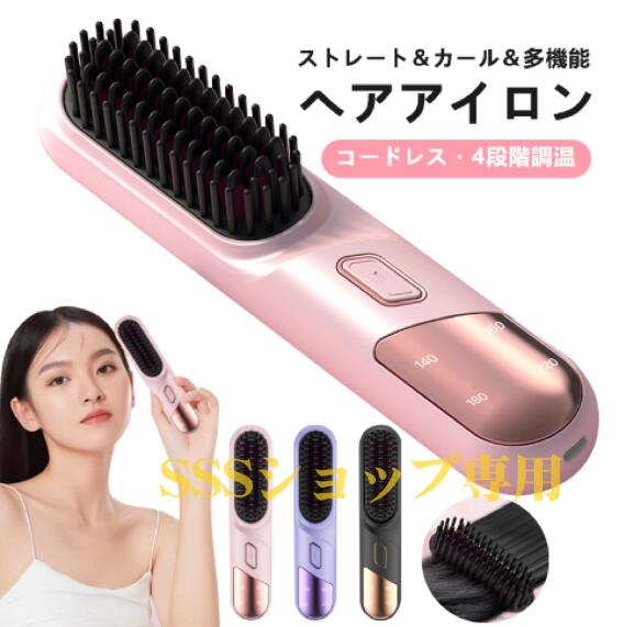 コードレスヘアブラシ ヒートブラシ ブラシアイロン ポータブル ミニヘアアイロン ヘアアイロンブラシ USB充電式 2way マイナスイオン 温度4段階調節