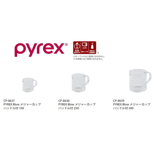 pyrex パイレックス Blowメジャーカップ ハンドル付 250ml CP-8638 電子レンジOK 食洗機OK